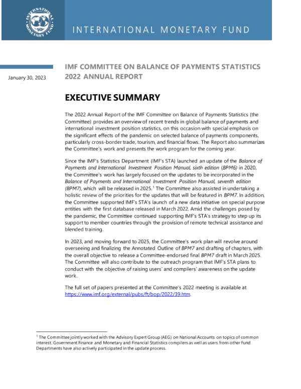 【国际货币基金组织】【20230130】IMF Committee on Balance of Payments Statistics Annual Report 2022-19页 指南