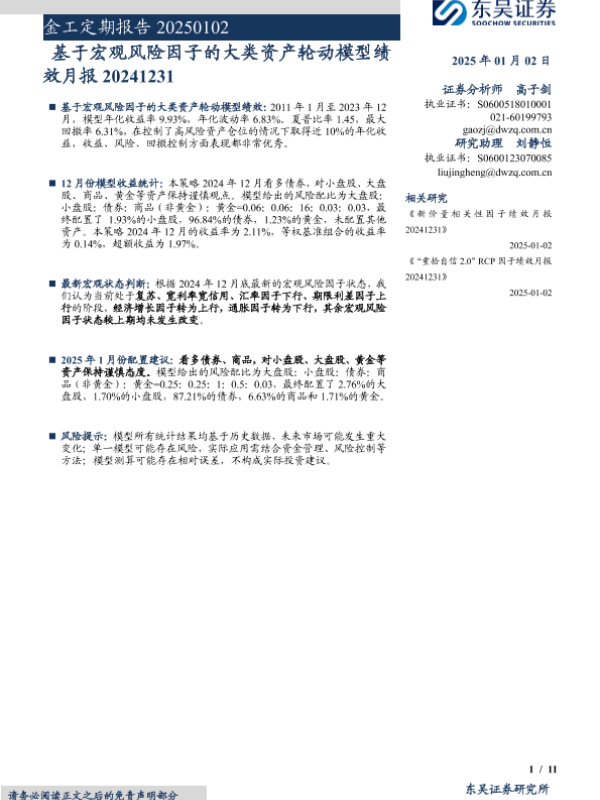 【东吴证券】【20250102】金工定期报告:基于宏观风险因子的大类资产轮动模型绩效月报-11页 行业研究