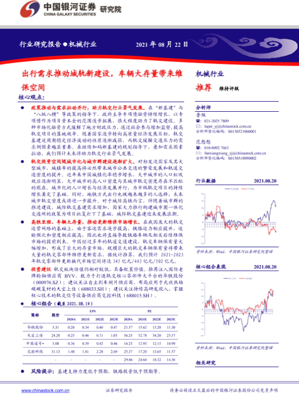 【银河证券】【20210822】机械行业:出行需求推动城轨新建设,车辆大存量带来维保空间-40页 行业研究