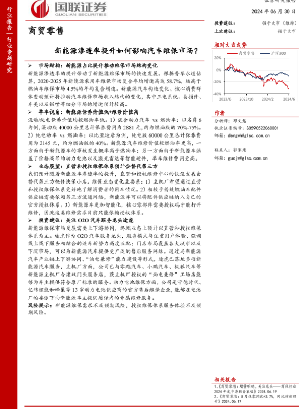 【国联证券】【20240630】商贸零售行业:新能源渗透率提升如何影响汽车维保市场?-13页 行业研究