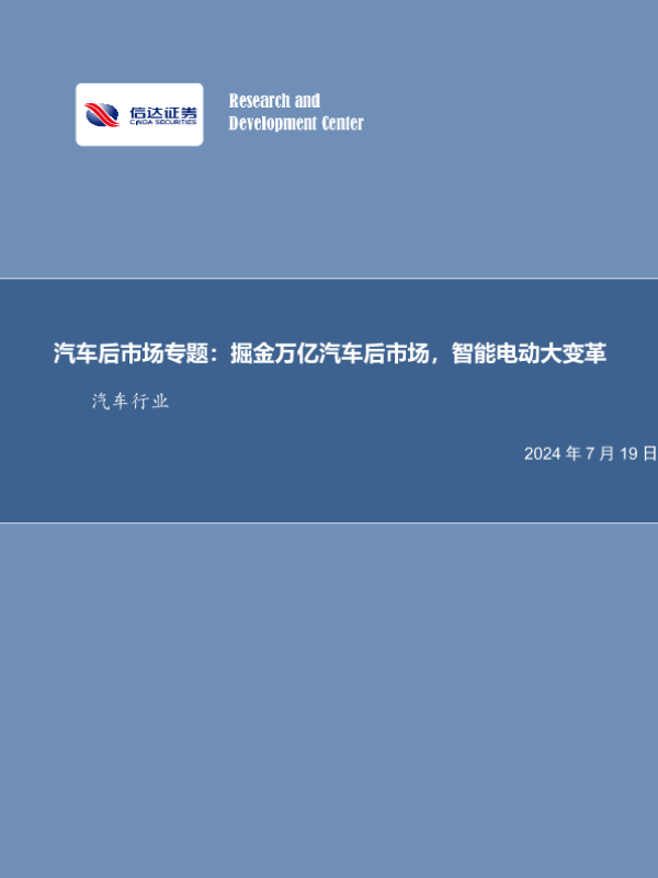 【信达证券】【20240719】汽车后市场专题:掘金万亿汽车后市场,智能电动大变革汽车行业-31页 行业研究