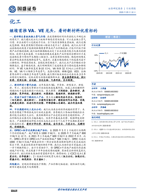 【国盛证券】【20200510】20200510-国盛证券-化工行业周报:继续首推 VA、VE龙头,看好新材料优质标的-10页 行业研究