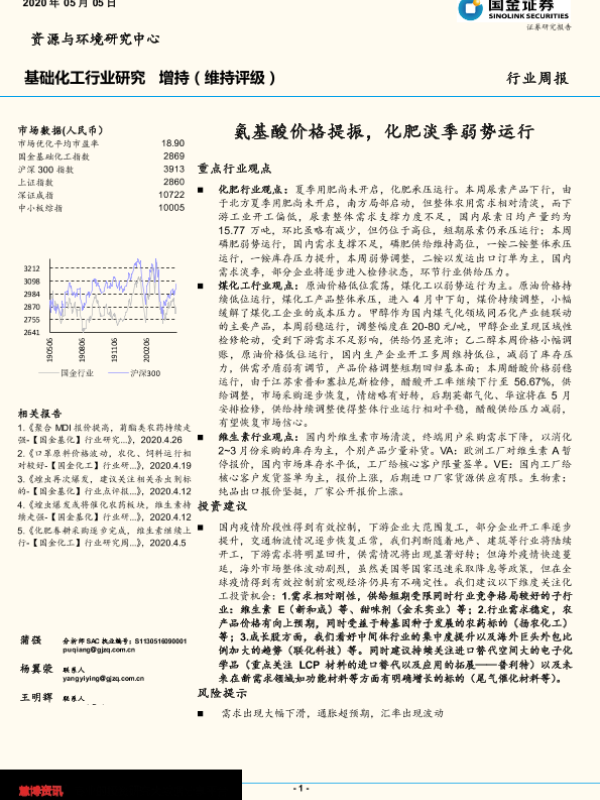 【国金证券】【20200505】20200505-国金证券-基础化工行业研究:氨基酸价格提振,化肥淡季弱势运行-14页 行业研究