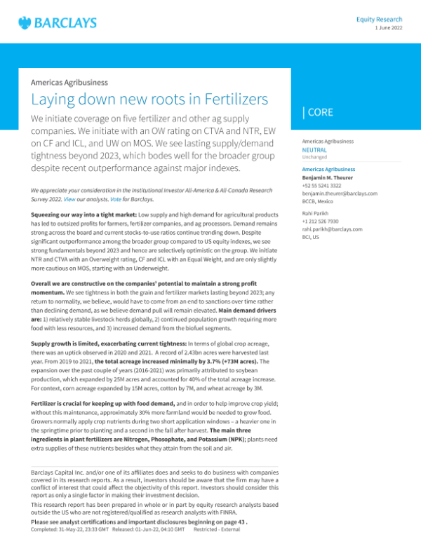 【巴克莱】【20220601】在化肥领域打下新根基-54页 行业研究