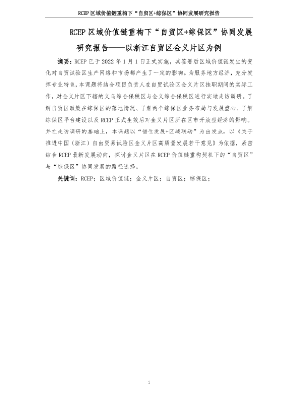 【上海财经大学】【20250113】RCEP区域价值链重构下“自贸区+综保区”协同发展研究报告-以浙江自贸区金义片区为例-29页 行业研究