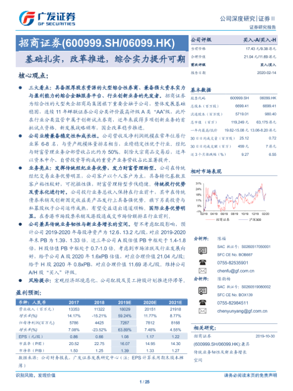 【广发证券】【20200214】招商证券(600999.SH/06099.HK)基础扎实,改革推进,综合实力提升可期-25页 行业研究
