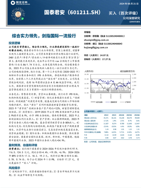 【国金证券】【20240821】国泰君安-601211.SH-综合实力领先,剑指国际一流投行-21页 行业研究