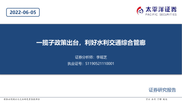 【太平洋证券】【20220605】一揽子政策出台,利好水利交通综合管廊-20页 行业研究