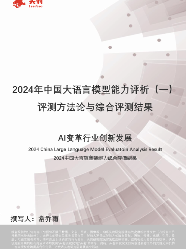 【头豹研究院】【20240628】2024年中国大语言模型能力评析(一)-评测方法论与综合评测结果-20页 行业研究