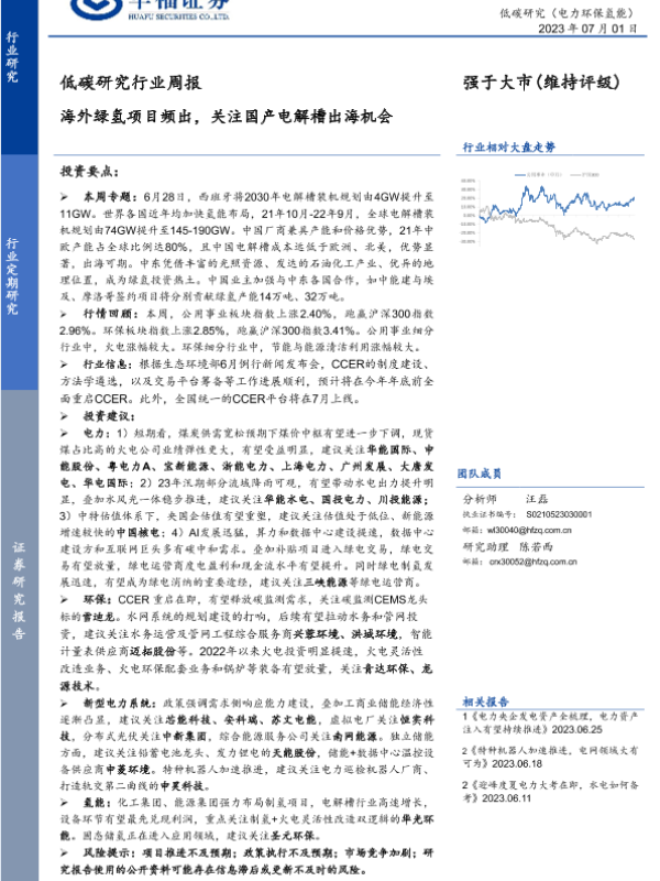 【华福证券】【20230701】低碳研究行业周报:海外绿氢项目频出,关注国产电解槽出海机会-17页 行业研究