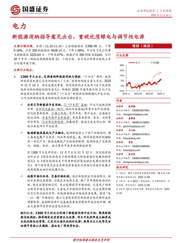 【国盛证券】【202511】新能源消纳指导意见出台,重视优质绿电与调节性电源-14页 证券期货研究报告