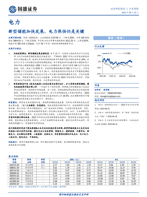 【国盛证券】【20230625】电力行业周报:新型储能加快发展,电力保供仍是关键-13页 行业研究
