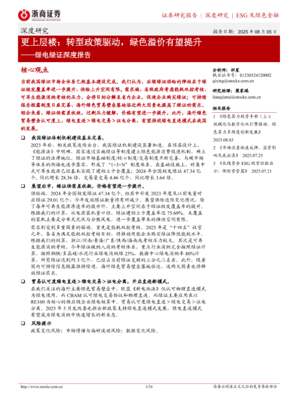 【浙商证券】【20250805】更上层楼,转型政策驱动,绿色溢价有望提升-24页 证券期货研究报告