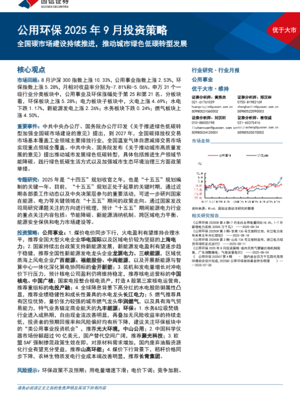 【国信证券】【202509】优于大市 公用环保 2025年 9月投资策略-31页 证券期货研究报告