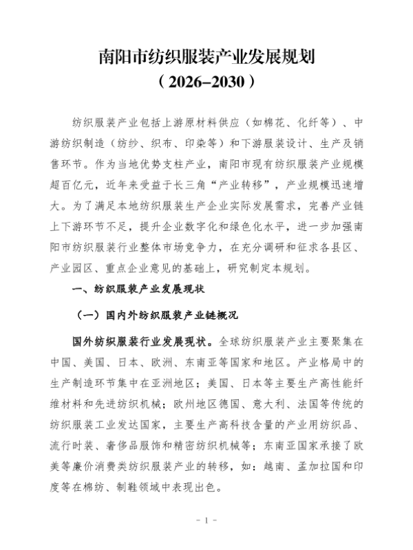 【南阳市纺织服装产业发展工作专班】【202510】南阳市纺织服装产业发展规划 (2026-2030)-34页 政策文件