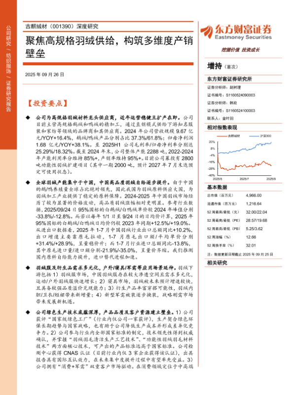 【东方财富证券】【202509】聚焦高规格羽绒供给,构筑多维度产销壁垒-28页 证券期货研究报告