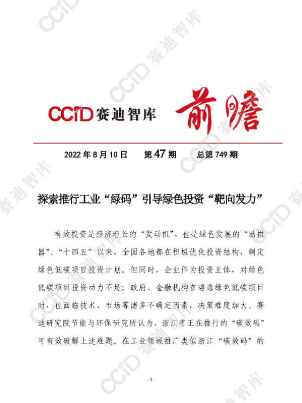 【赛迪研究院节能与环保研究所】【20220810】探索推行工业“绿码”引导绿色投资“靶向发力”-10页 行业研究