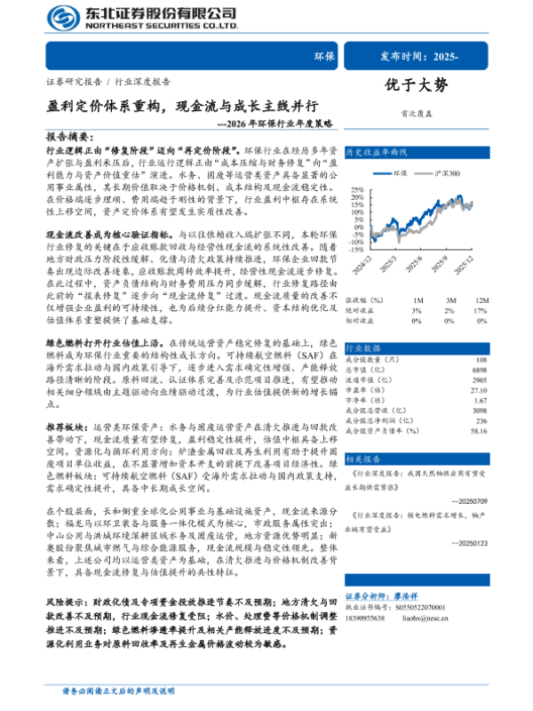 【东北证券】【2025】2026年环保行业年度策略_盈利定价体系重构_现金流与成长主线并行-34页 证券期货研究报告