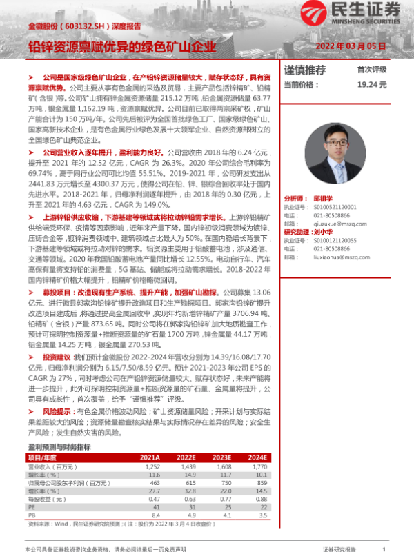 【民生证券】【20220305】20220305-民生证券-金徽股份-603132.SH-深度报告:铅锌资源禀赋优异的绿色矿山企业-34页 行业研究