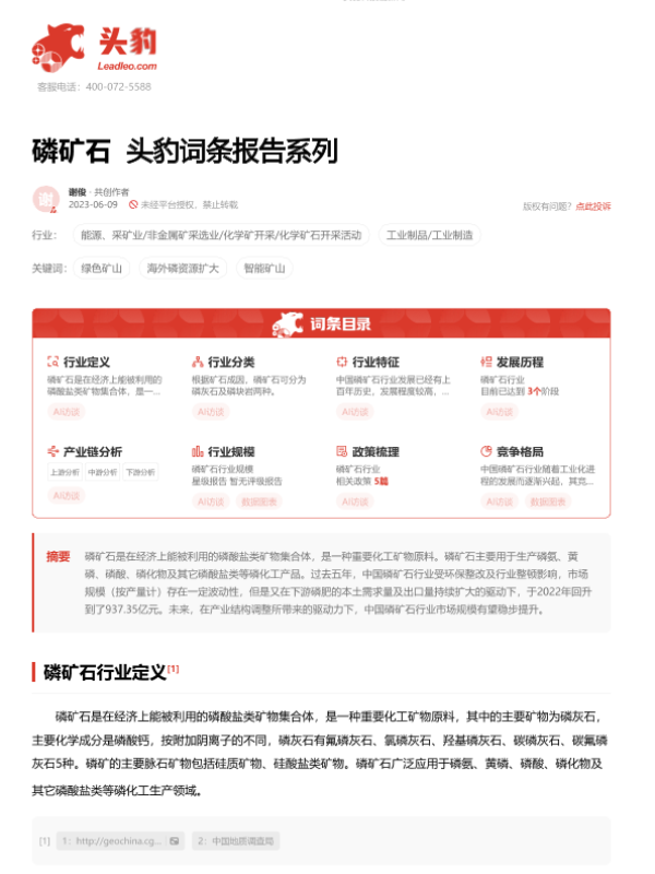 【头豹研究院】【20230919】磷矿石 头豹词条报告系列-15页 行业研究