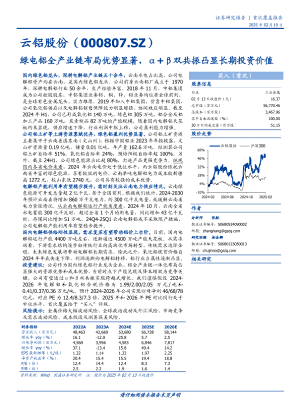 【国盛证券】【20250219】云铝股份-绿电铝全产业链布局优势显著,α+β双共振凸显长期投资价值-63页 行业研究