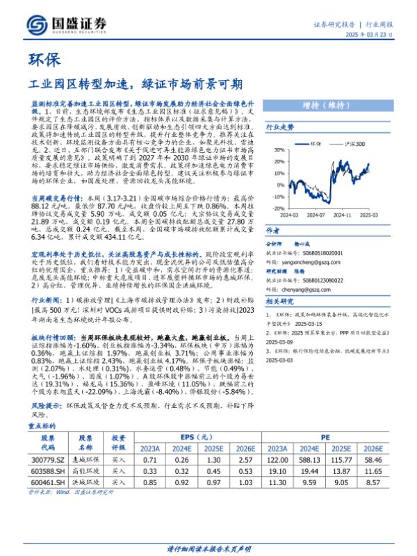 【国盛证券】【20250323】20250323-国盛证券-环保行业周报:工业园区转型加速,绿证市场前景可期-12页 行业研究