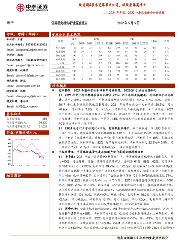 【中泰证券】【20220505】缺货潮&技术变革带来机遇,板块整体高增长——2021年年报、2022一季报业绩分析和总结-54页 行业研究