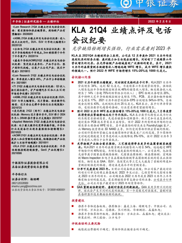 【中银证券】【20220206】KLA 21Q4业绩点评及电话会议纪要:光学缺陷检测增长强劲,行业需求看到2023年-15页 行业研究