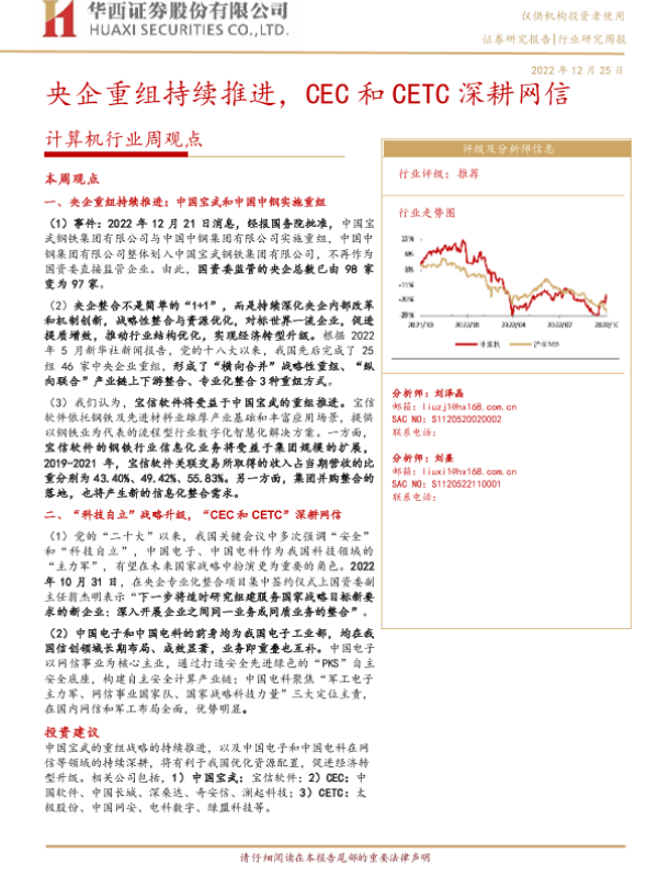 【华西证券】【20221225】计算机行业周观点:央企重组持续推进,CEC和CETC深耕网信-27页 行业研究