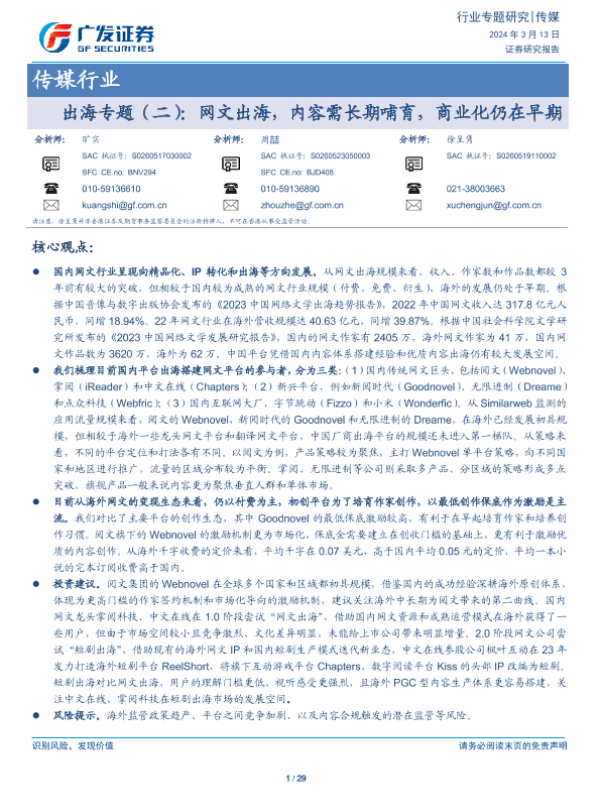 【广发证券】【20240313】传媒行业出海专题(二):网文出海,内容需长期哺育,商业化仍在早期-29页 行业研究