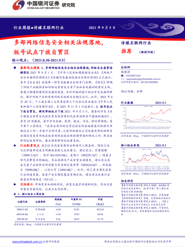 【银河证券】【20210905】20210905-中国银河-传媒互联网行业周报:多部网络信息安全相关法规落地,版号试点下放自贸区-36页 行业研究