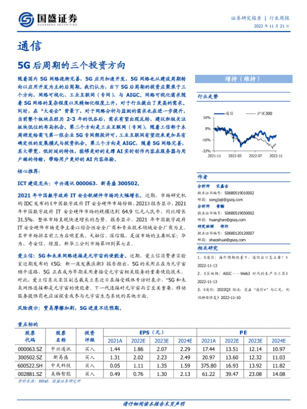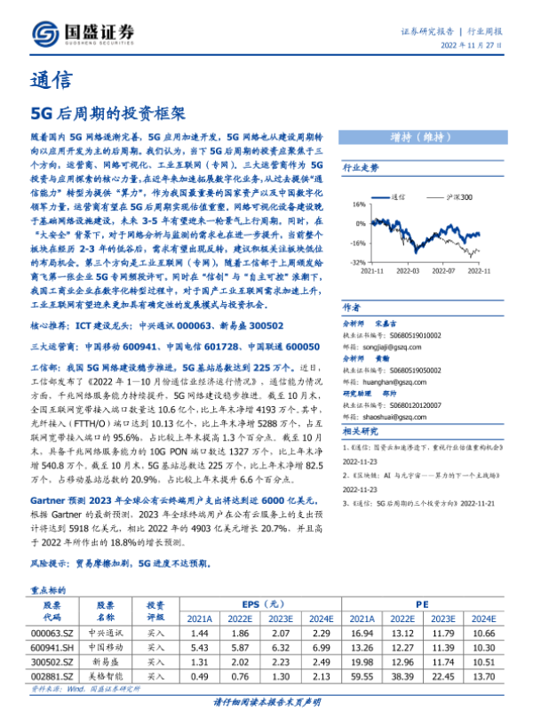 【国盛证券】【20221121】通信:5G后周期的三个投资方向-18页 行业研究