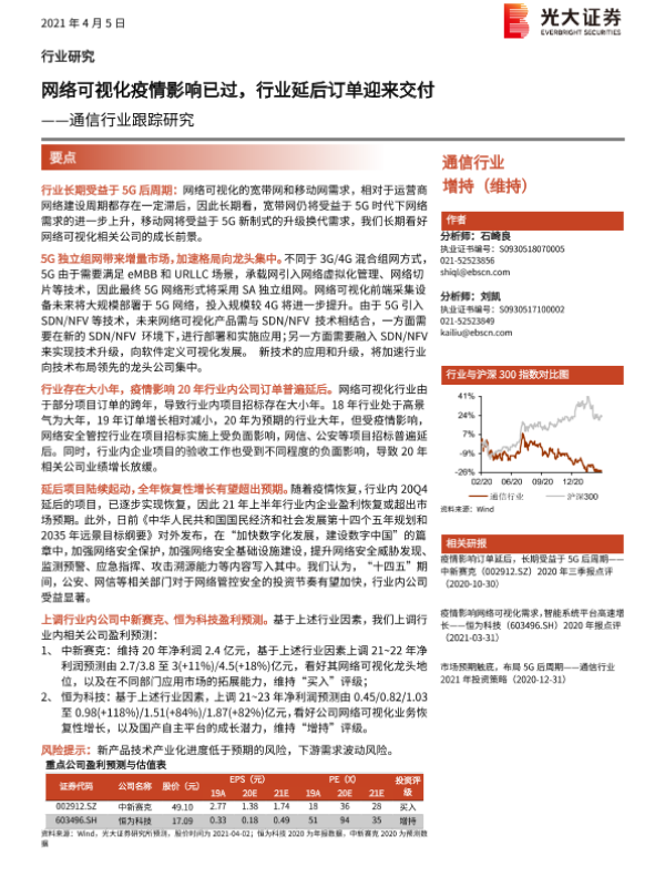 【光大证券】【20210405】通信行业跟踪研究:网络可视化疫情影响已过,行业延后订单迎来交付-2页 行业研究