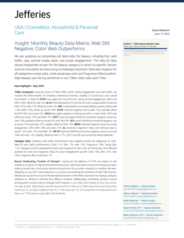 【Jefferies】【20250612】Insight Monthly Beauty Data Matrix; Web Still Negative; Color Web Outperforms-17页 行业研究