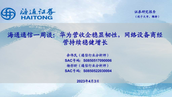 【海通证券】【20230403】海通通信一周谈:华为营收企稳显韧性,网络设备商经营持续稳健增长-11页 行业研究