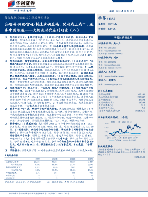 【华创证券】【20211115】211115-华创证券-传化智联-002010.SZ-深度研究报告:大物流时代系列研究(八)-公路港-网络货运-制造业供应链,联动线上线下,服务中国智造-44页 行业研究