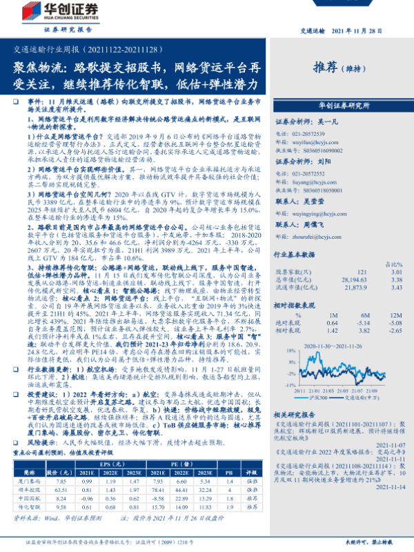 【华创证券】【20211128】交通运输行业周报:聚焦物流-20页 行业研究
