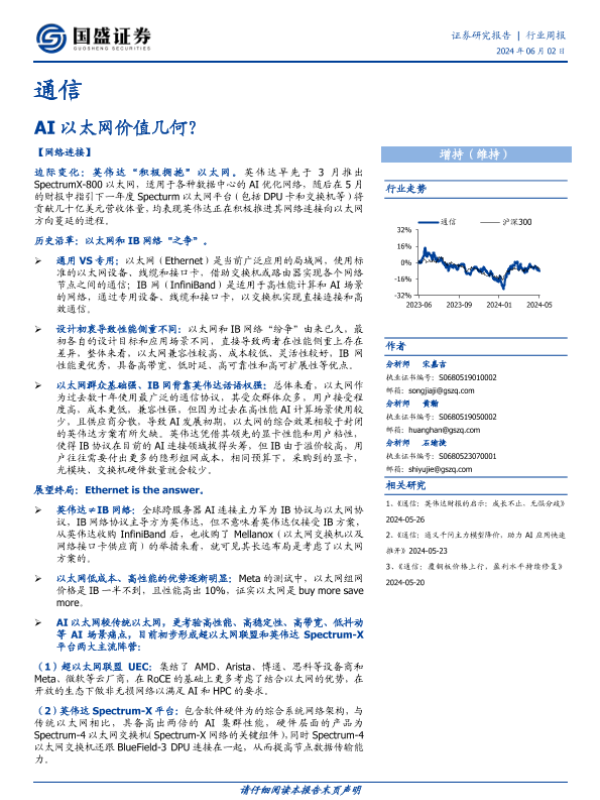 【国盛证券】【20240602】通信行业周报:AI以太网价值几何?-15页 行业研究