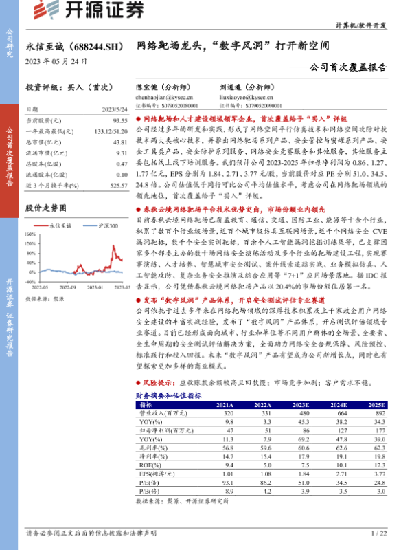 【开源证券】【20230524】20230524-开源证券-永信至诚-688244.SH-公司首次覆盖报告:网络靶场龙头,“数字风洞”打开新空间-22页 行业研究