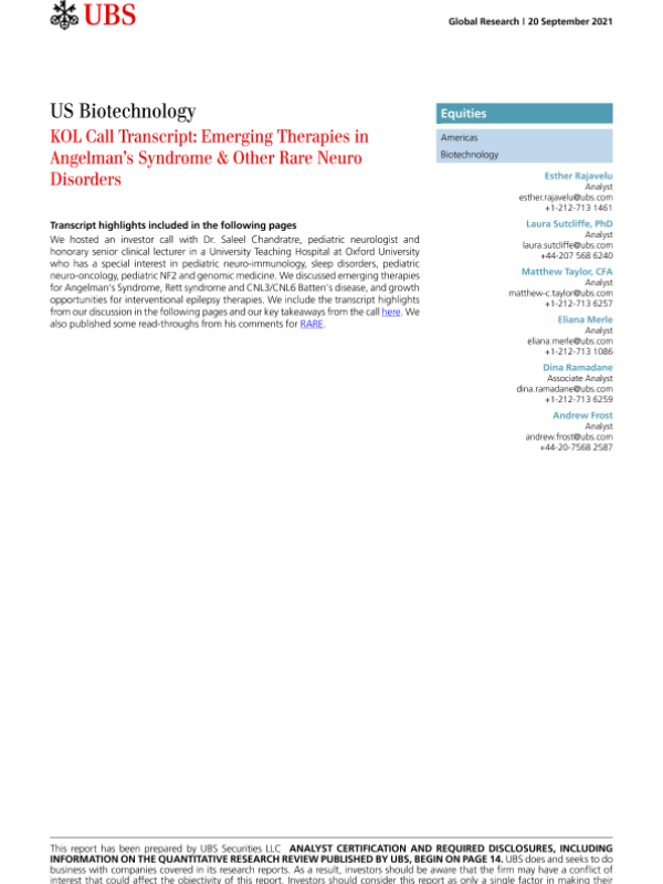 【瑞银】【20210920】美股生物科技行业-安杰曼综合征和其他罕见神经疾病的新疗法-21页 行业研究