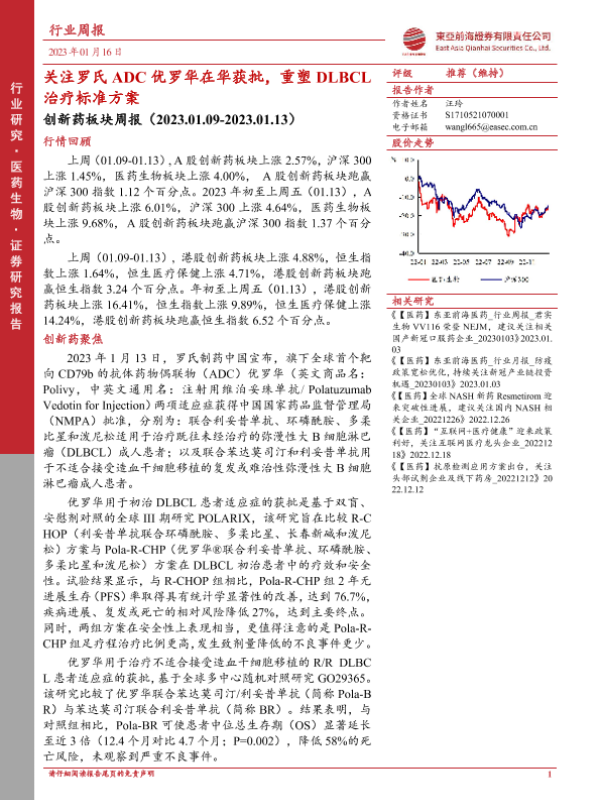 【东亚前海证券】【20230116】创新药板块周报:关注罗氏ADC优罗华在华获批,重塑DLBCL治疗标准方案-19页 行业研究