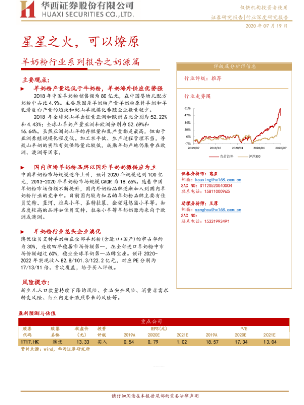 【华西证券】【20200719】羊奶粉行业系列报告之奶源篇:星星之火,可以燎原-20页 行业研究
