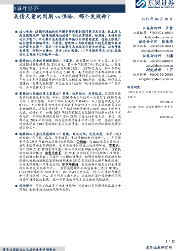 【东吴证券】【20250430】美债天量的到期vs供给,哪个更致命?-12页 宏观策略