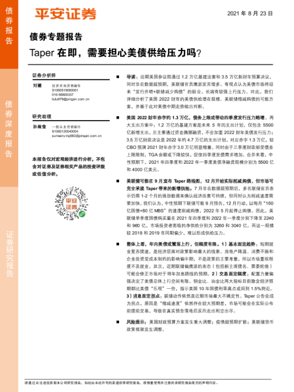 【平安证券】【20210823】Taper在即,需要担心美债供给压力吗?-19页 行业研究