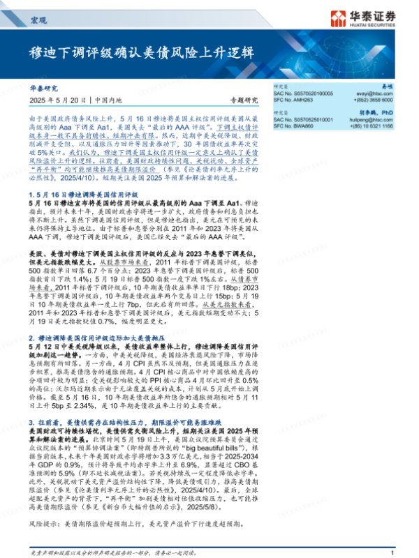 【华泰证券】【20250520】宏观专题研究:穆迪下调评级确认美债风险上升逻辑-11页 宏观策略