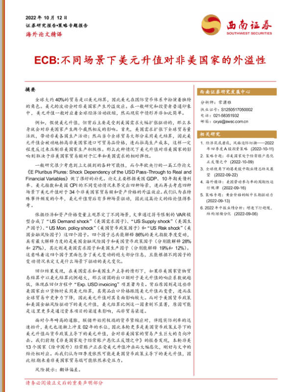 【西南证券】【20221012】ECB 不同场景下美元升值对非美国家的外溢性-13页 行业研究