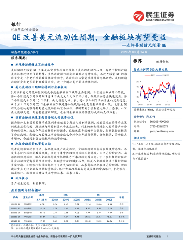 【民生证券】【20200324】QE改善美元流动性预期,金融板块有望受益——点评美联储无限量QE-5页 行业研究