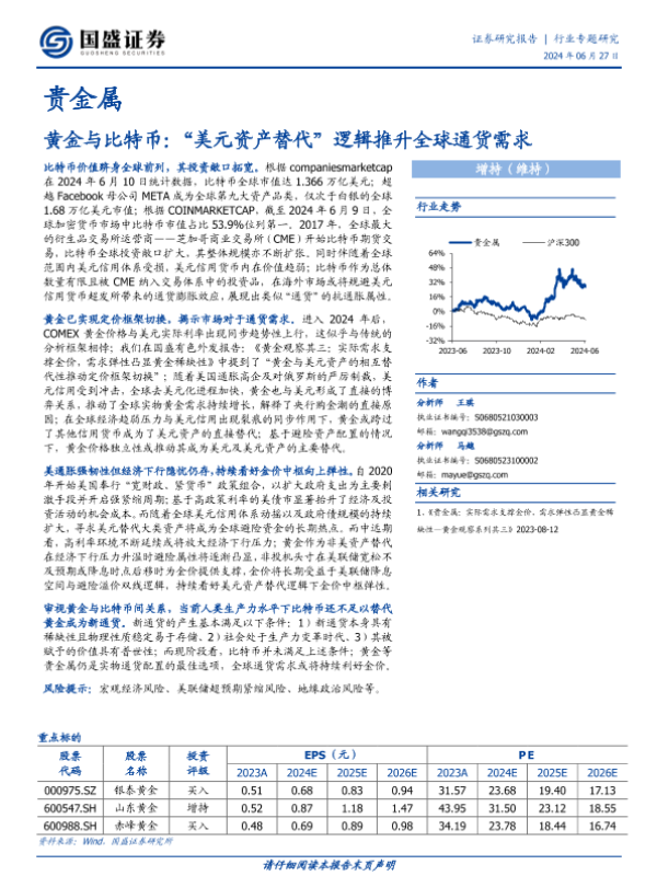【国盛证券】【20240627】贵金属行业专题研究:黄金与比特币:“美元资产替代”逻辑推升全球通货需求-23页 行业研究