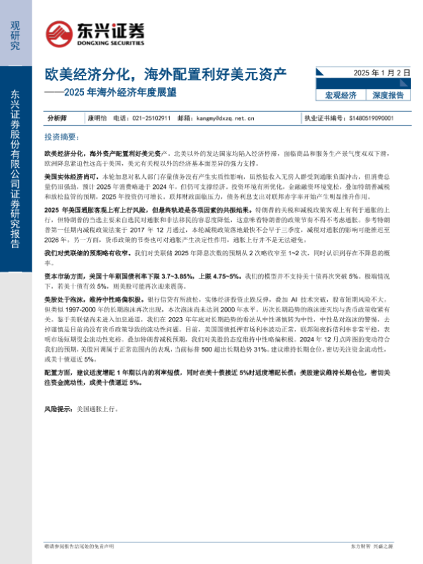 【东兴证券】【20250102】2025年海外经济年度展望:欧美经济分化,海外配置利好美元资产-16页 宏观策略