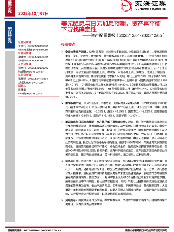 【东海证券】【202512】美元降息与日元加息预期,资产再平衡下寻找确定性-23页 证券期货研究报告